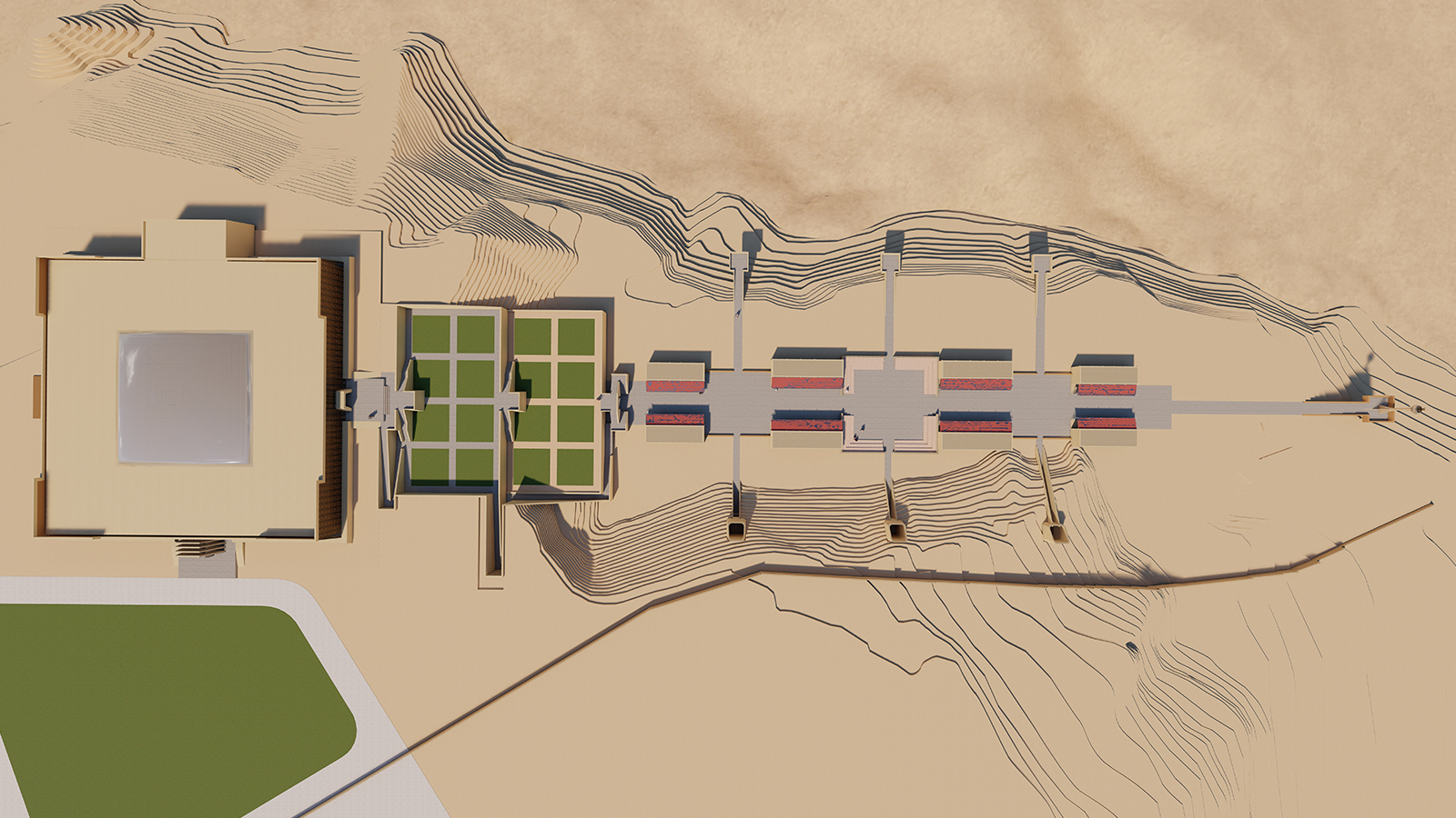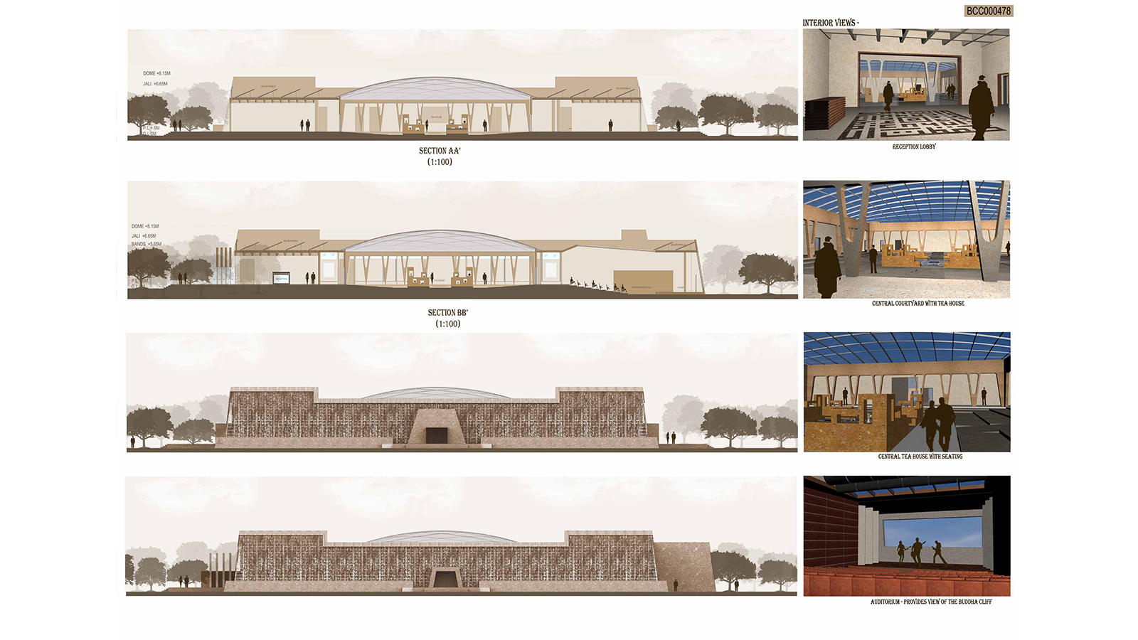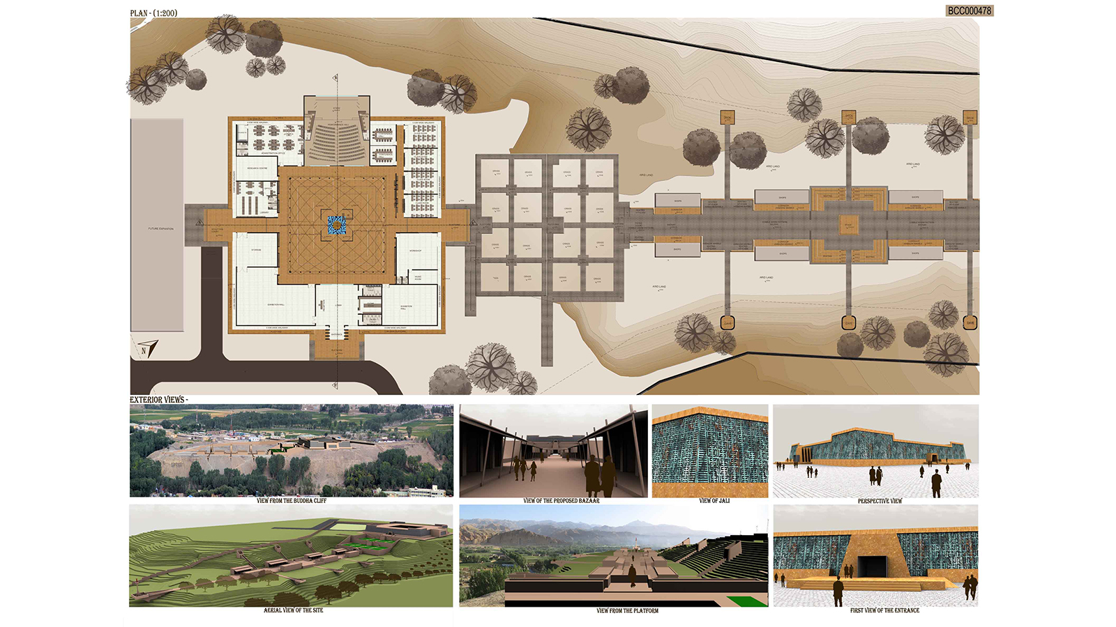The competition was to design a cultural centre in Bamiyan, Afghanistan where the contoured site was overlooked by the Bamiyan Buddha. The area requirements included workspaces, exhibition hall, administration, library, classrooms, auditorium, tea house etc.