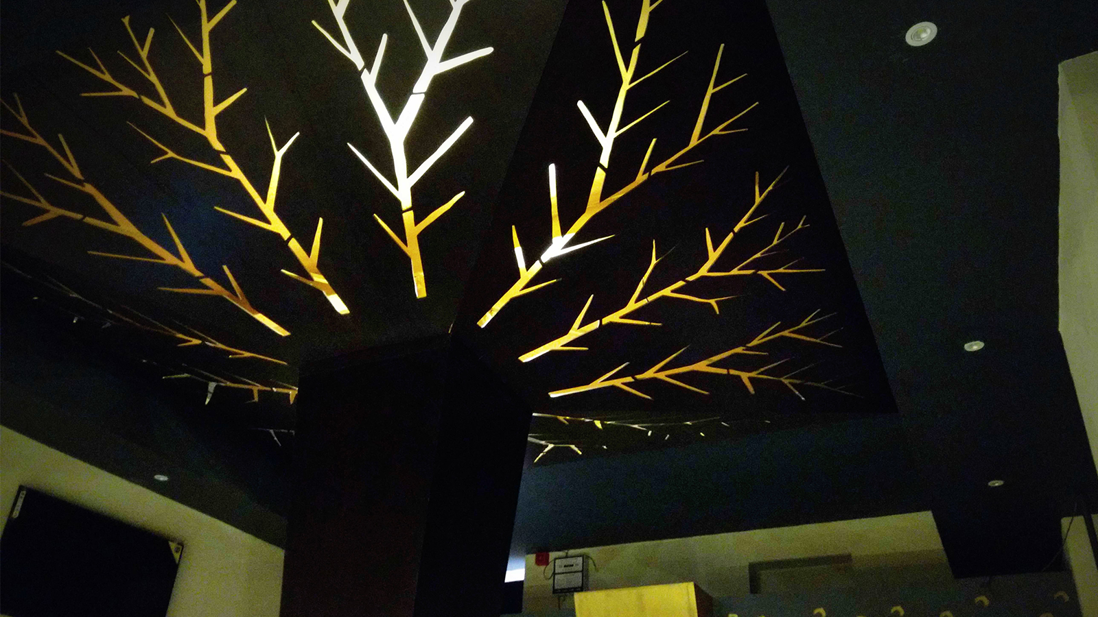 Located on the Radial Road leading up to the inner circle of CP, Barush is one of the most popular lounge in the buzzing culture of Delhi’s famous Connaught Place. It provided with the unique challenge of zoning the space into several pockets which are to be activated through different moods along with inducing an overall coherent warm feel. The intent was to subtly authenticate nature, which is done by a warm colour palette, abstract natural forms and mild lightings enhancing each form and imposing an abstract sense to it.