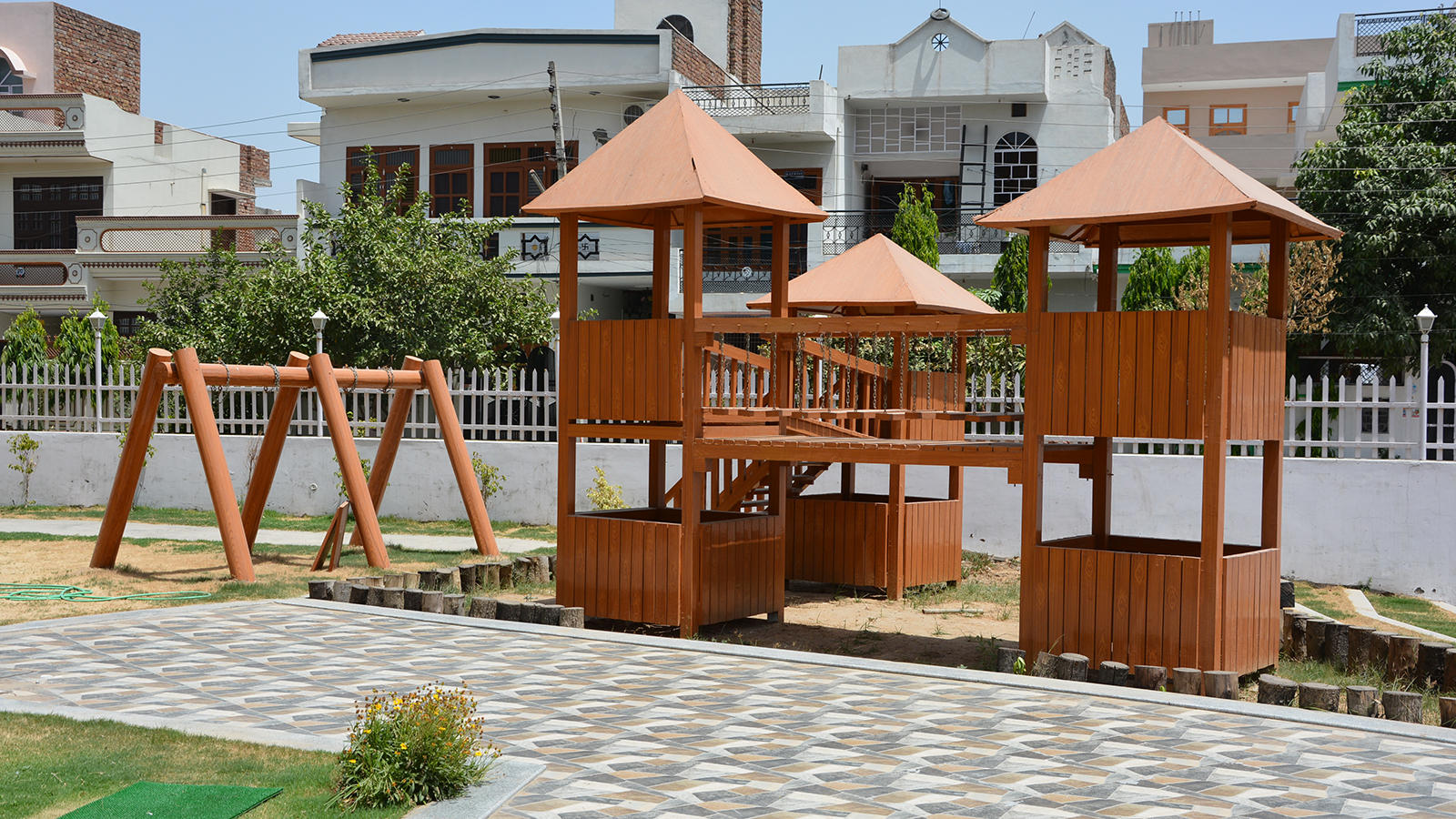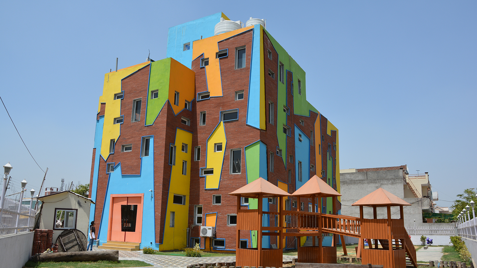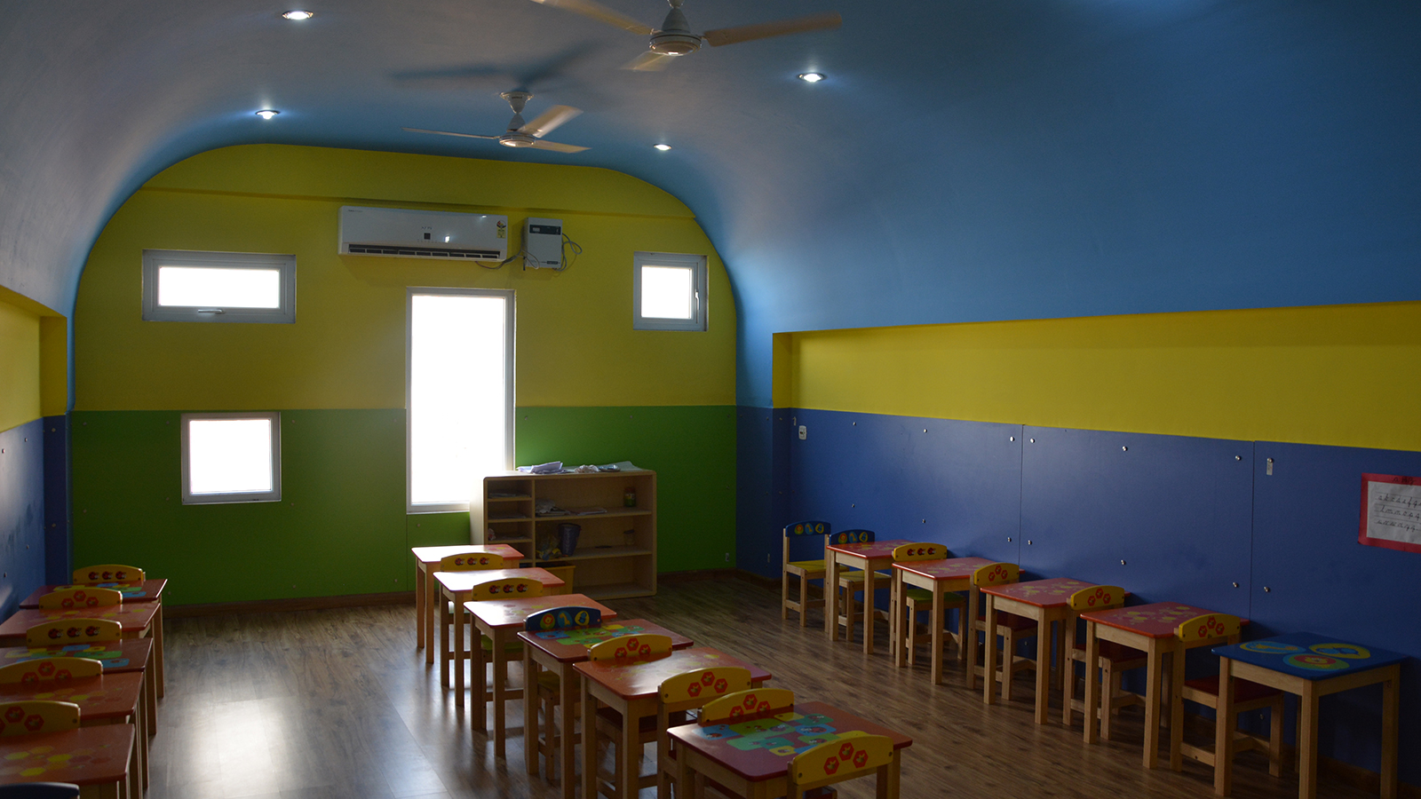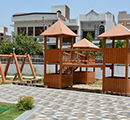 Symbolically a house of knowledge, the Rosary School was designed for the tiny tots. Built on a trapezoidal site, it harbors all the facilities in order to enhance interactive spaces. Central concern of the design was to make the building appreciable and not seem like any anonymous institution. Keeping this in mind the elevation treatment of façade is intended to elicit the bright and colorful trait of the toddlers. The planning enfolds 4-5 classrooms on each floor along with an activity room where ceiling patterns are an eye catcher. Introducing the idea of interactive environment, the library and play station were exclusively designed with library having artificial contours and swings made in wood.