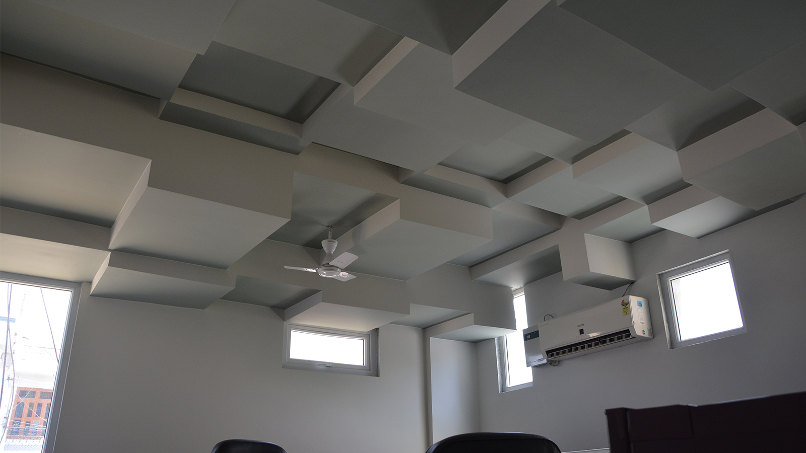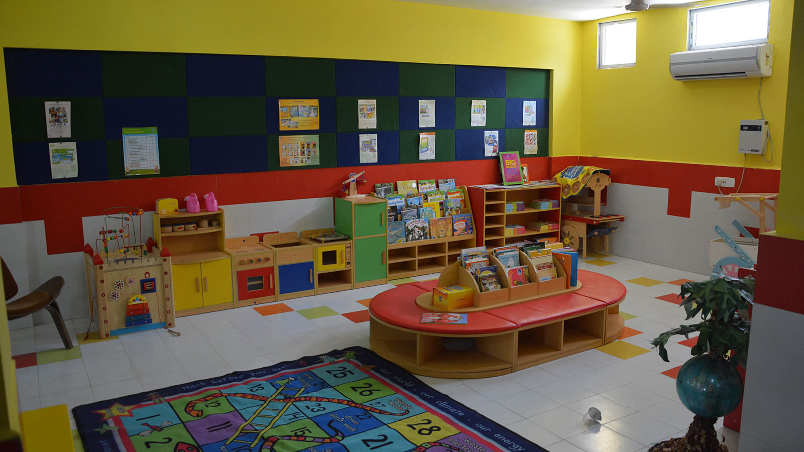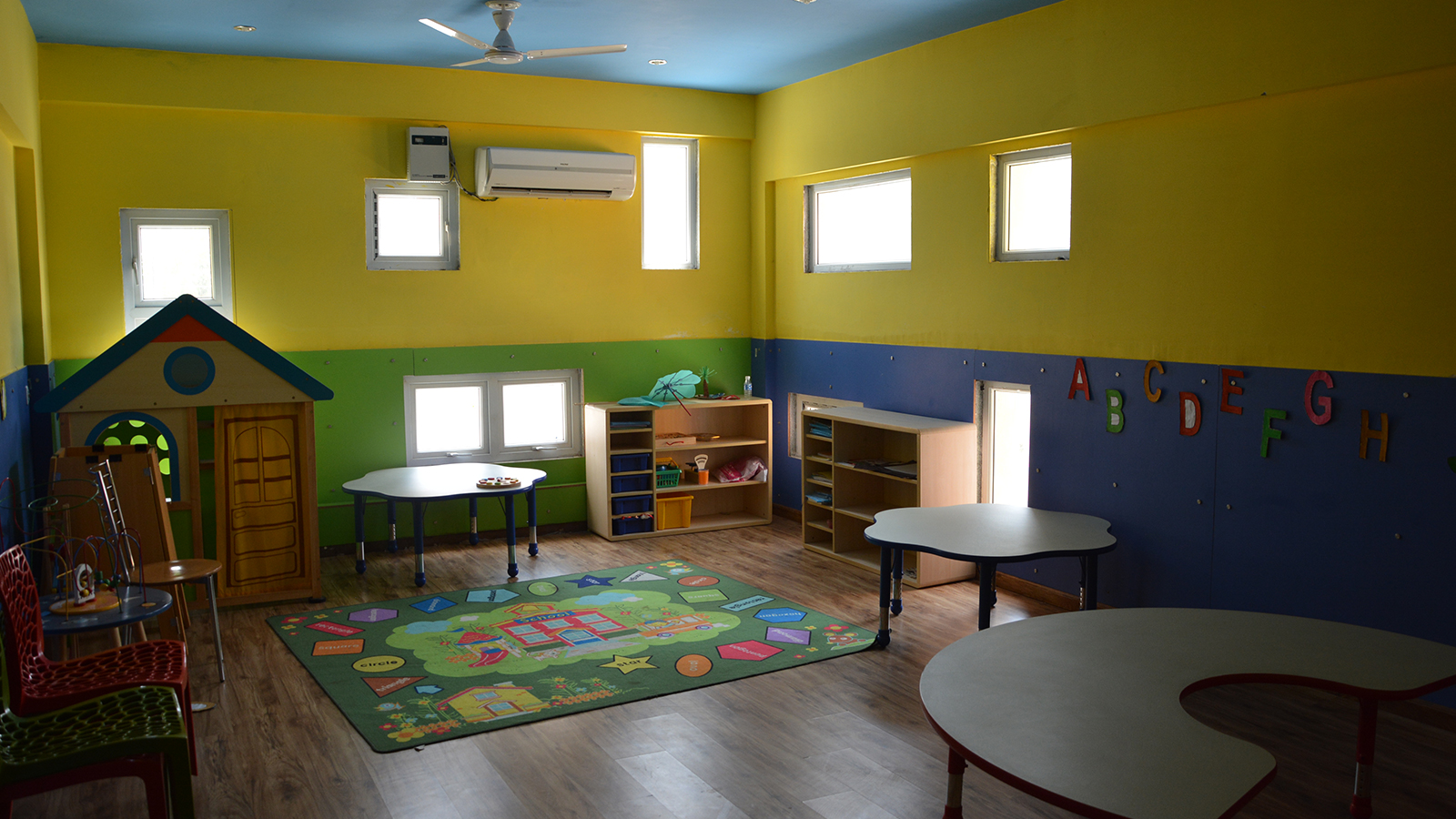 Symbolically a house of knowledge, the Rosary School was designed for the tiny tots. Built on a trapezoidal site, it harbors all the facilities in order to enhance interactive spaces. Central concern of the design was to make the building appreciable and not seem like any anonymous institution. Keeping this in mind the elevation treatment of façade is intended to elicit the bright and colorful trait of the toddlers. The planning enfolds 4-5 classrooms on each floor along with an activity room where ceiling patterns are an eye catcher. Introducing the idea of interactive environment, the library and play station were exclusively designed with library having artificial contours and swings made in wood.