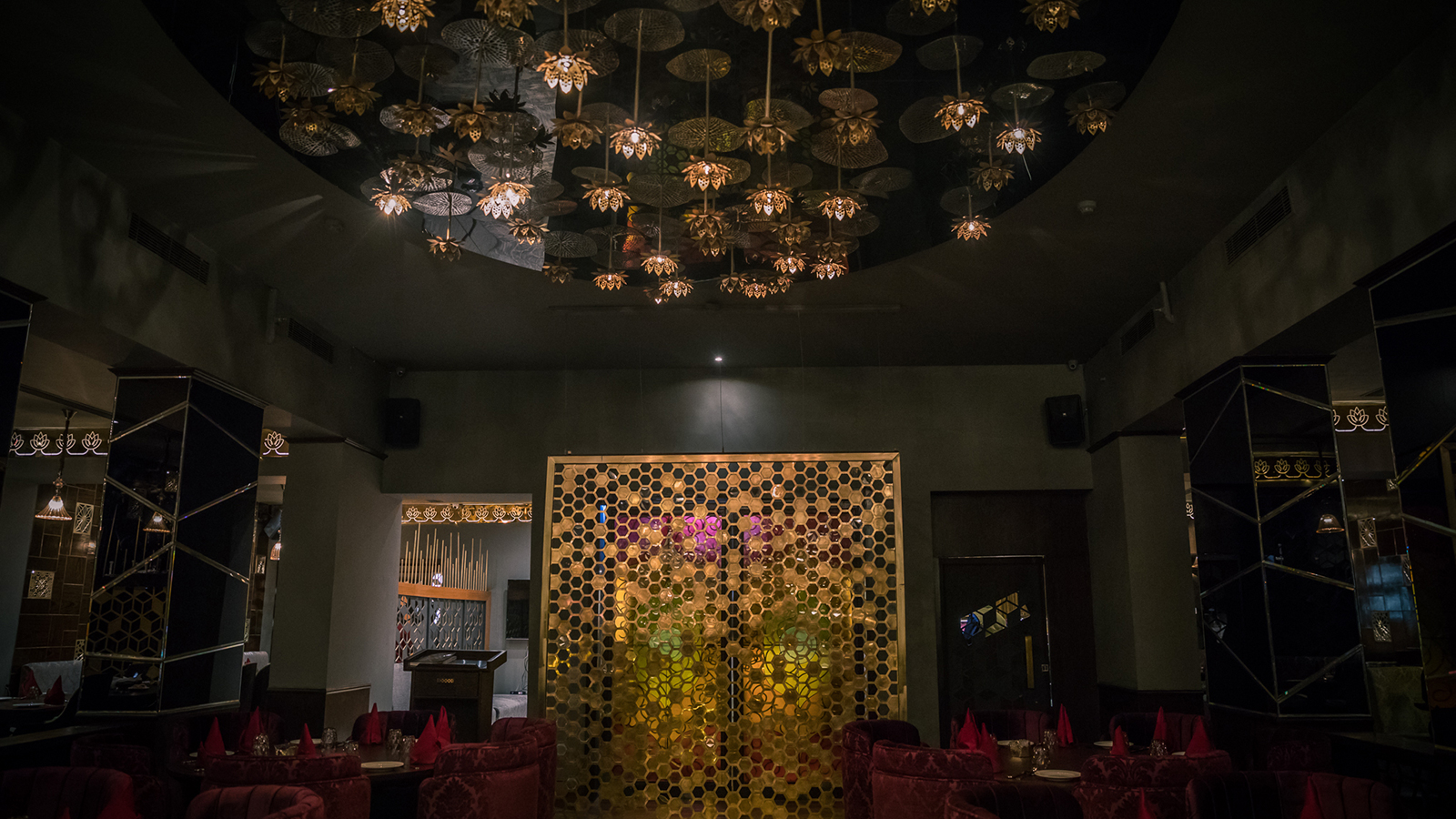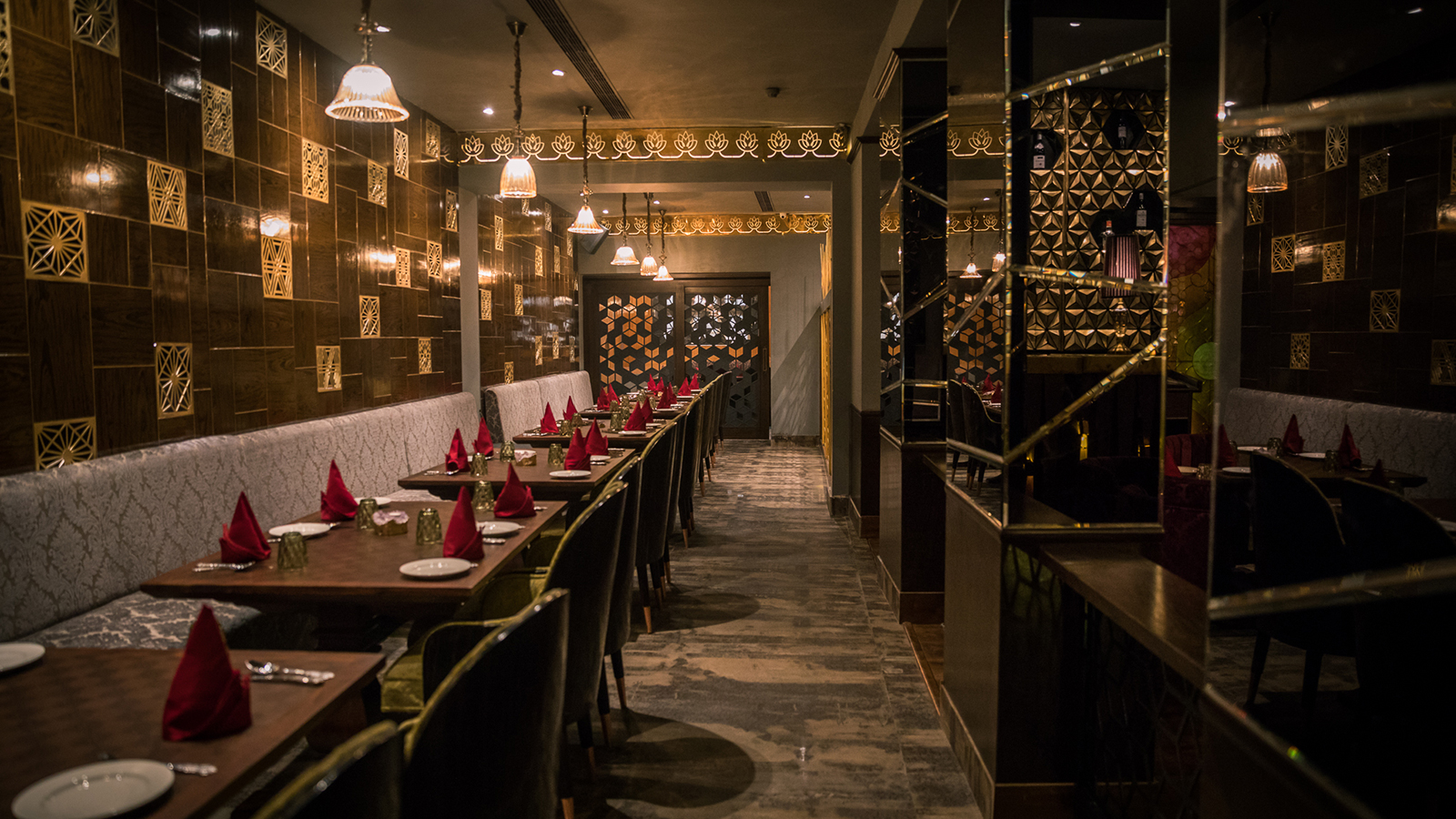 ‘Imperial Spice’, features a specially tailored Inverted Lotus pond designed to embody the feel of Nature while sitting in the middle of an enclosed space. A great quantity of Laser Cut and Bended Metal (Brass, Copper & Stainless Steel) has been used to bring richness to the interiors.