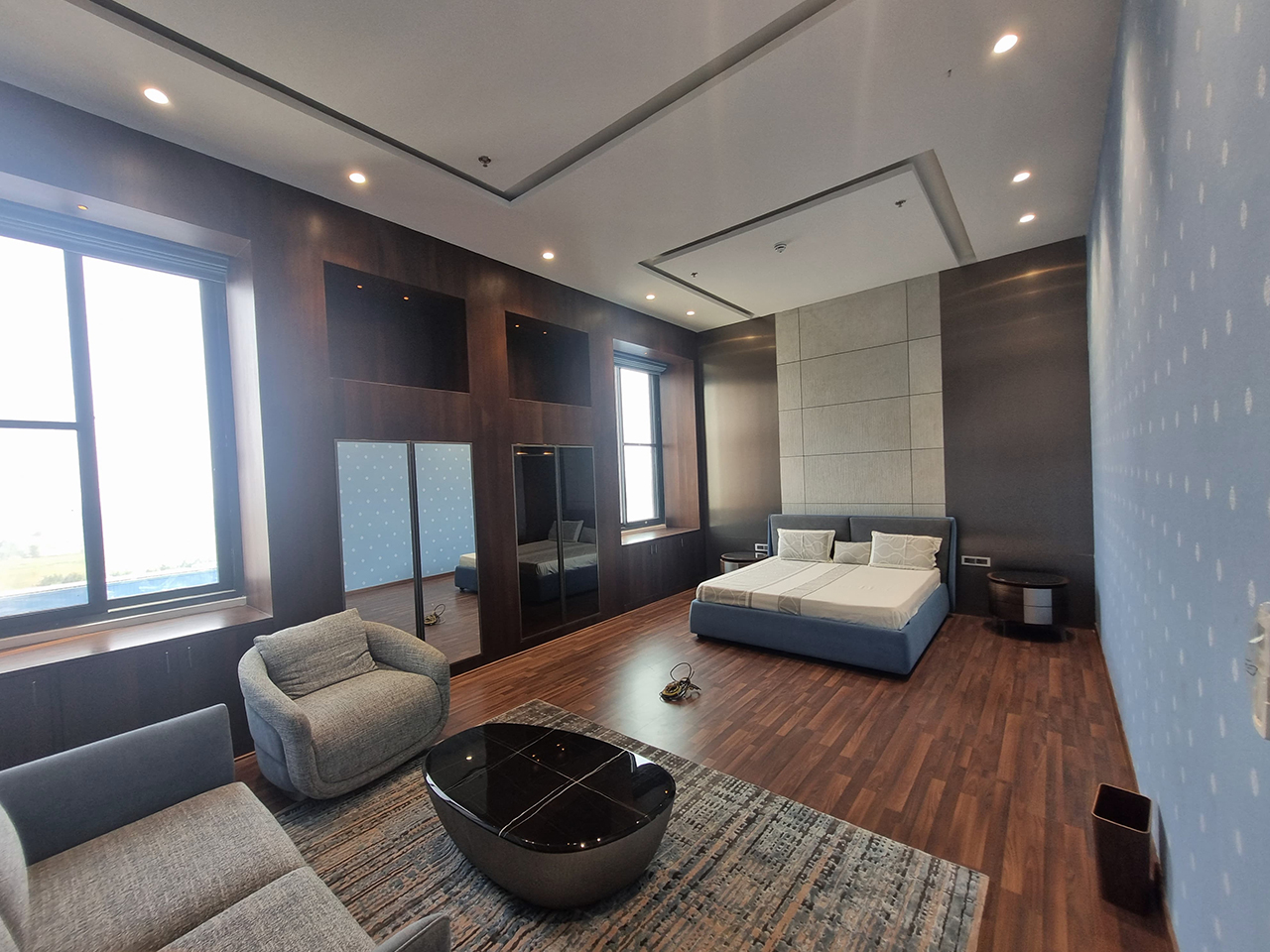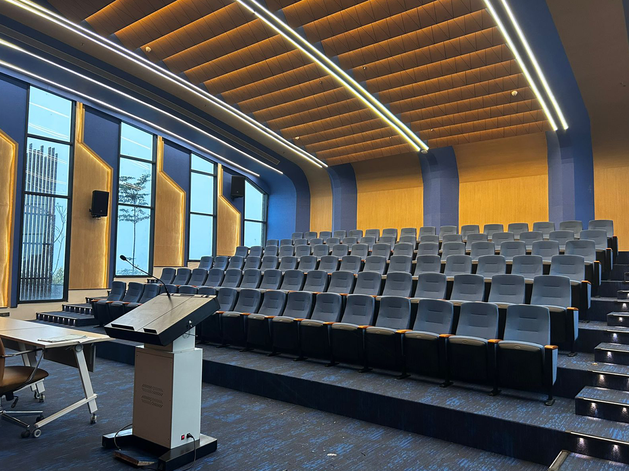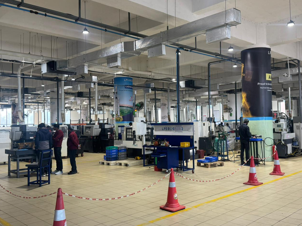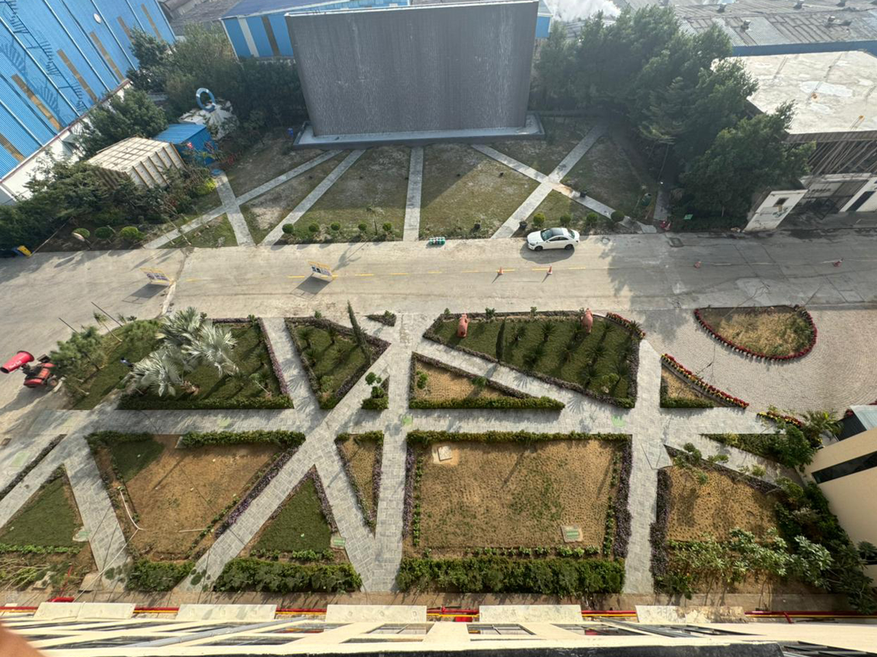 The two blocks of the building are set on either sides of a covered courtyard with a fish pond. It was conceived as a “Green Building, and designed to reduce heat gain and increase the penetration of natural day light into the work areas to minimize the use of artificial lighting.