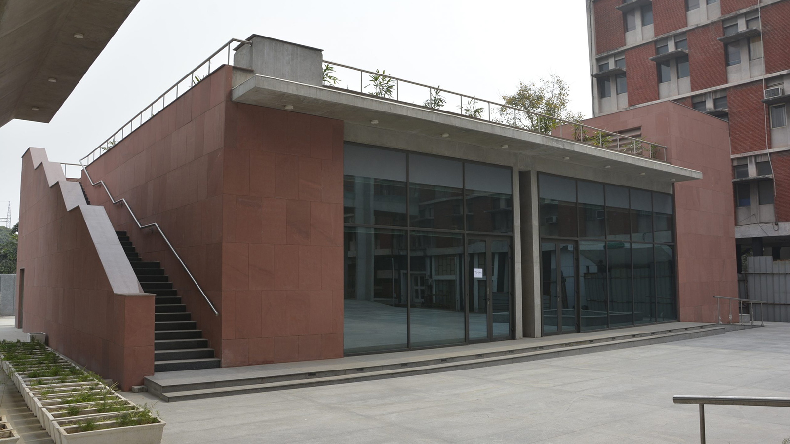 The architecture and interiors of the NCAER campus proposes to mirror this role in terms of functionality, technology and aesthetic clarity. A new state of the art office building flanks a central plaza, establishing a civic presence on the New Delhi skyline. An independent conference centre anchors the entry, enabling multiple usage as a venue for hosting NCAER lectures and forums, as well as public events.