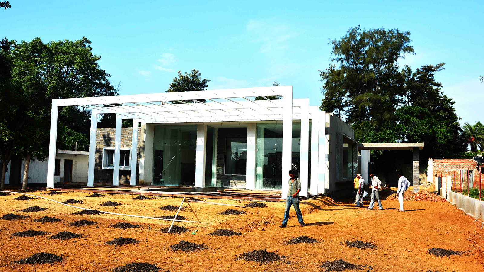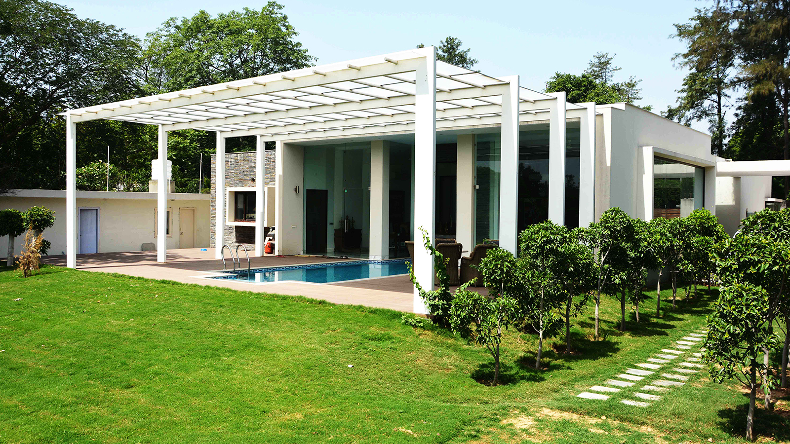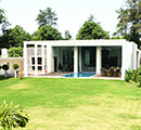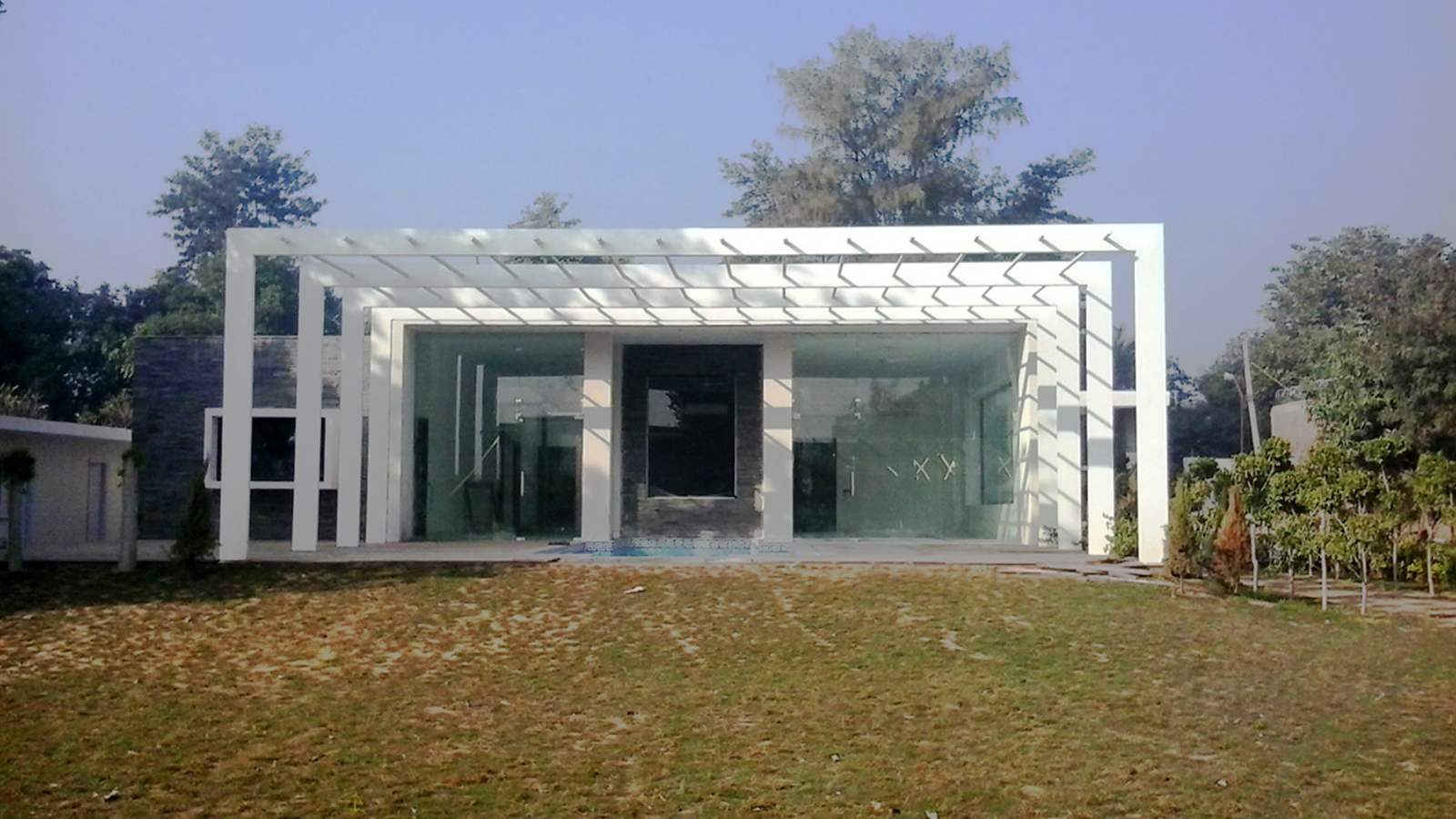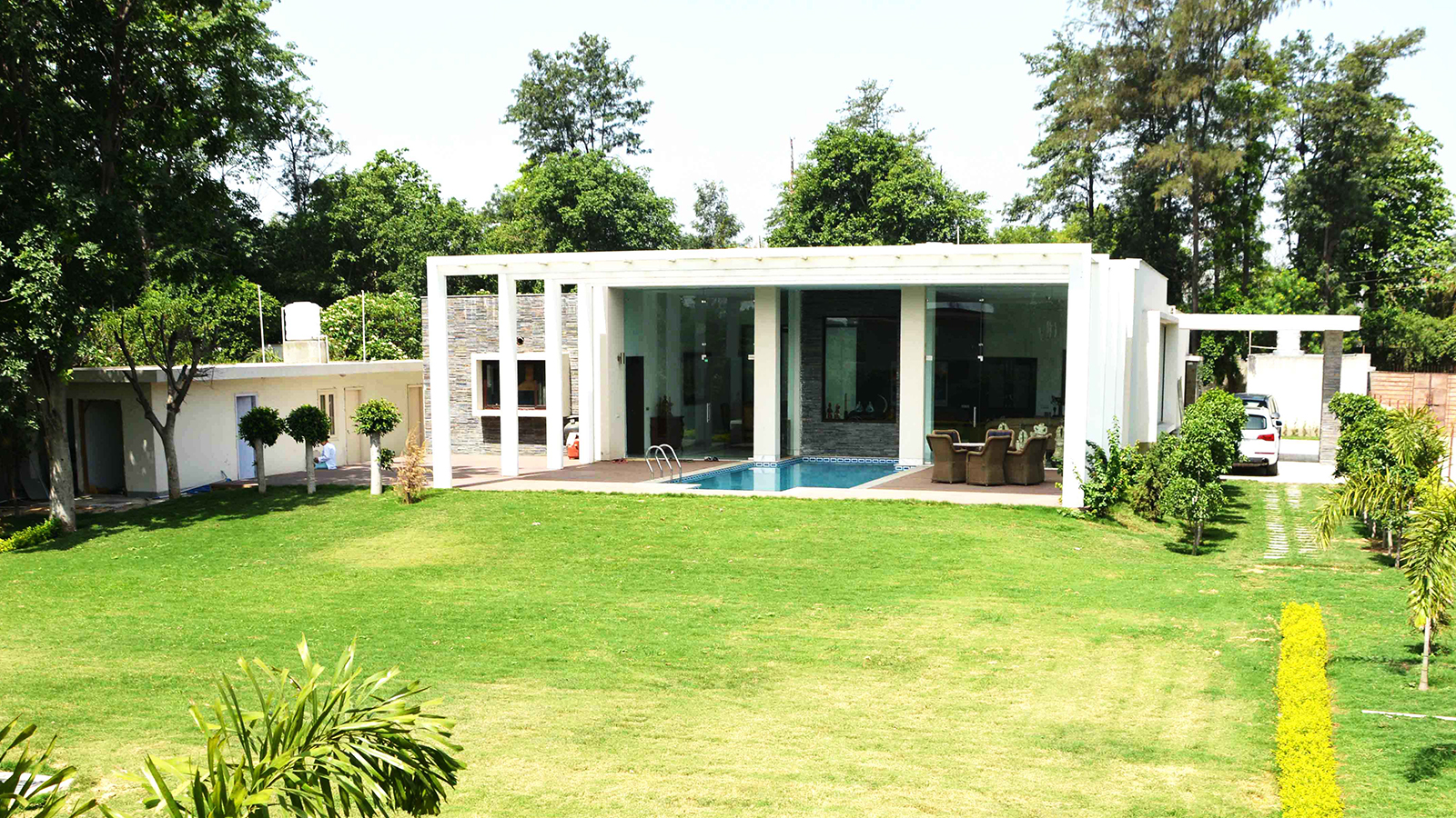 As with designing other buildings, designing a farmhouse can actually be more mirthful. Conceptualized on contemporary idiom, the Sultanpur Farmhouse is perfectly planned as per the client’s requirements. The façade is attractively patterned with large sized windows. Delivering dwellers the ecstatic feeling of contemporary lifestyle, even the landscaped area is proposed in accordance to English Gardens. With gazebo enclosed in the midst of palm and pine trees, the garden does justice to its theme.