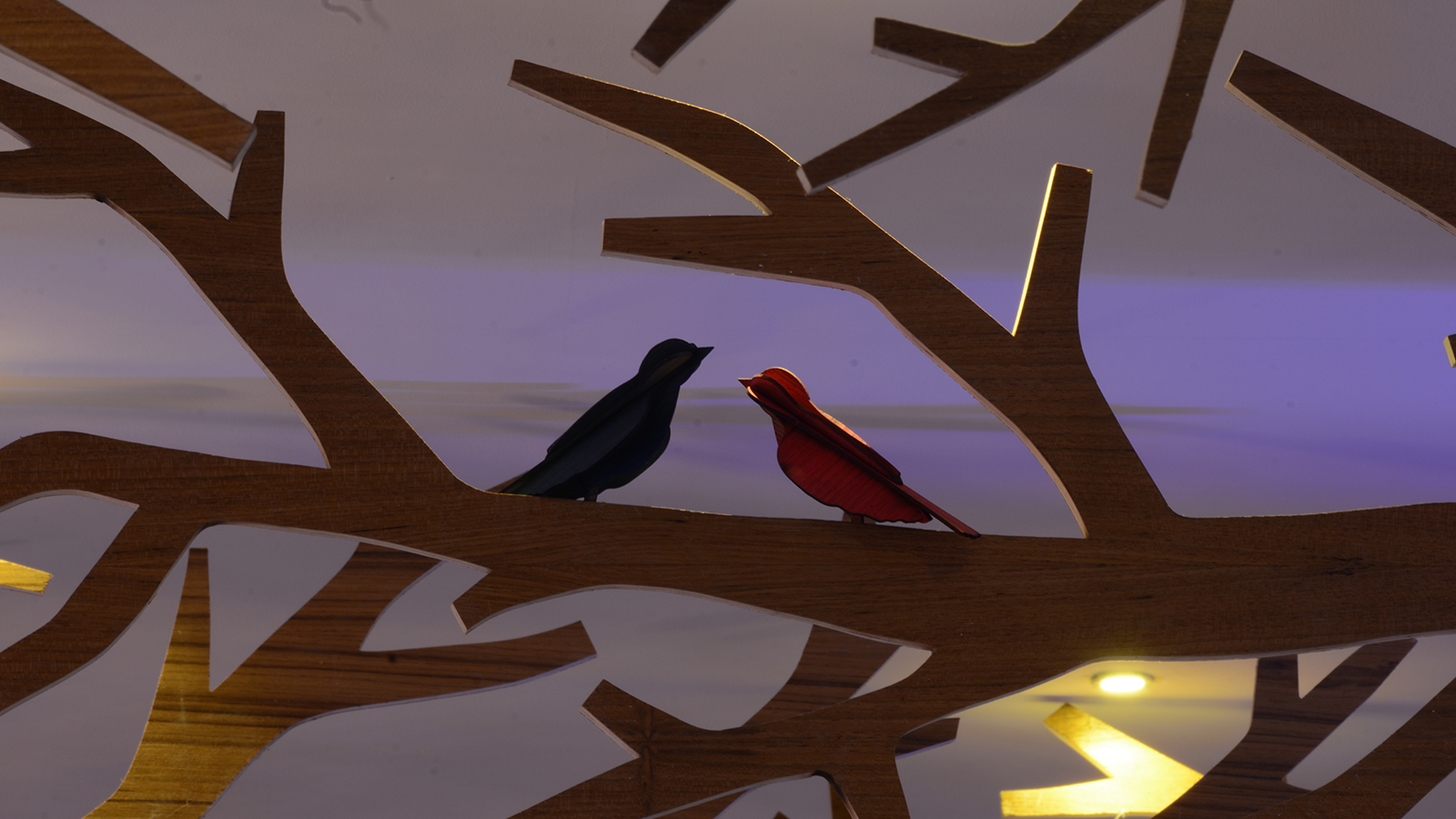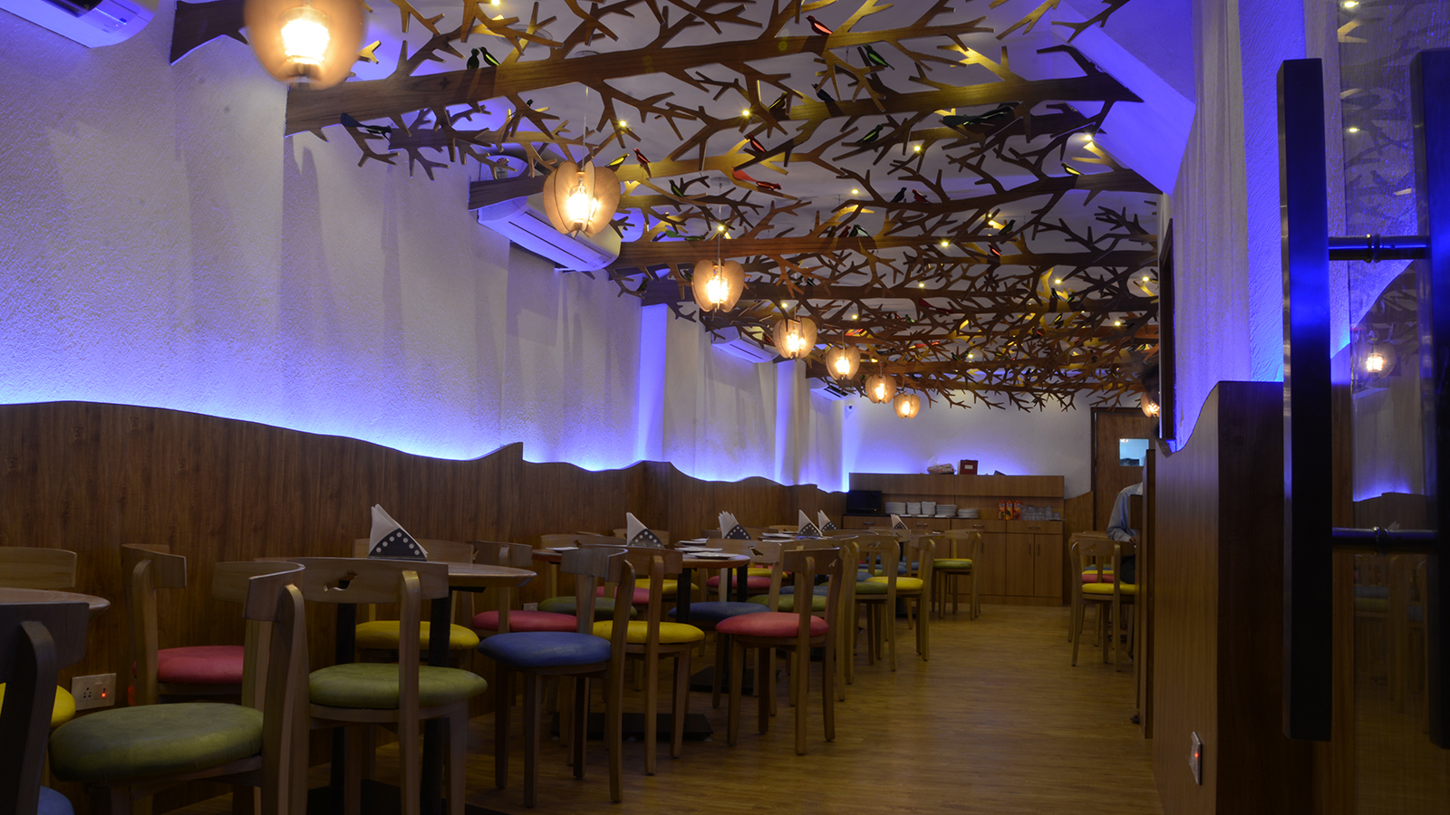 The interior of the café is dedicated to the once cherished, now lost habitat of the sparrows. The twigs and the branches, stabbing through the walls and hovering over the seating area, making themselves perching points for the beauties. As if, in conversation with the guests, sometimes, singing and sometimes tweeting. Giving them company are the little squirrels. Always busy, always at it, just like our gen next.
