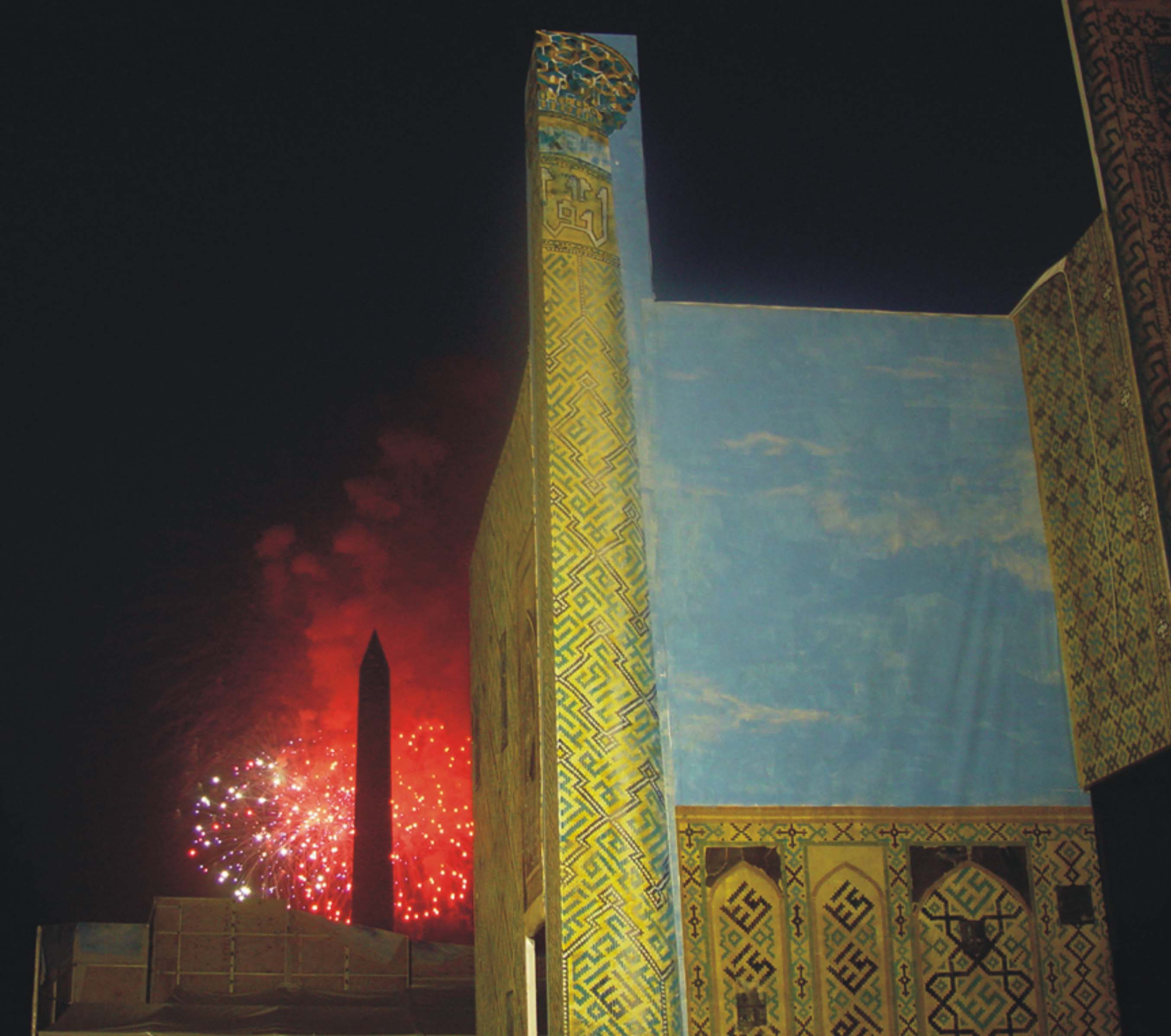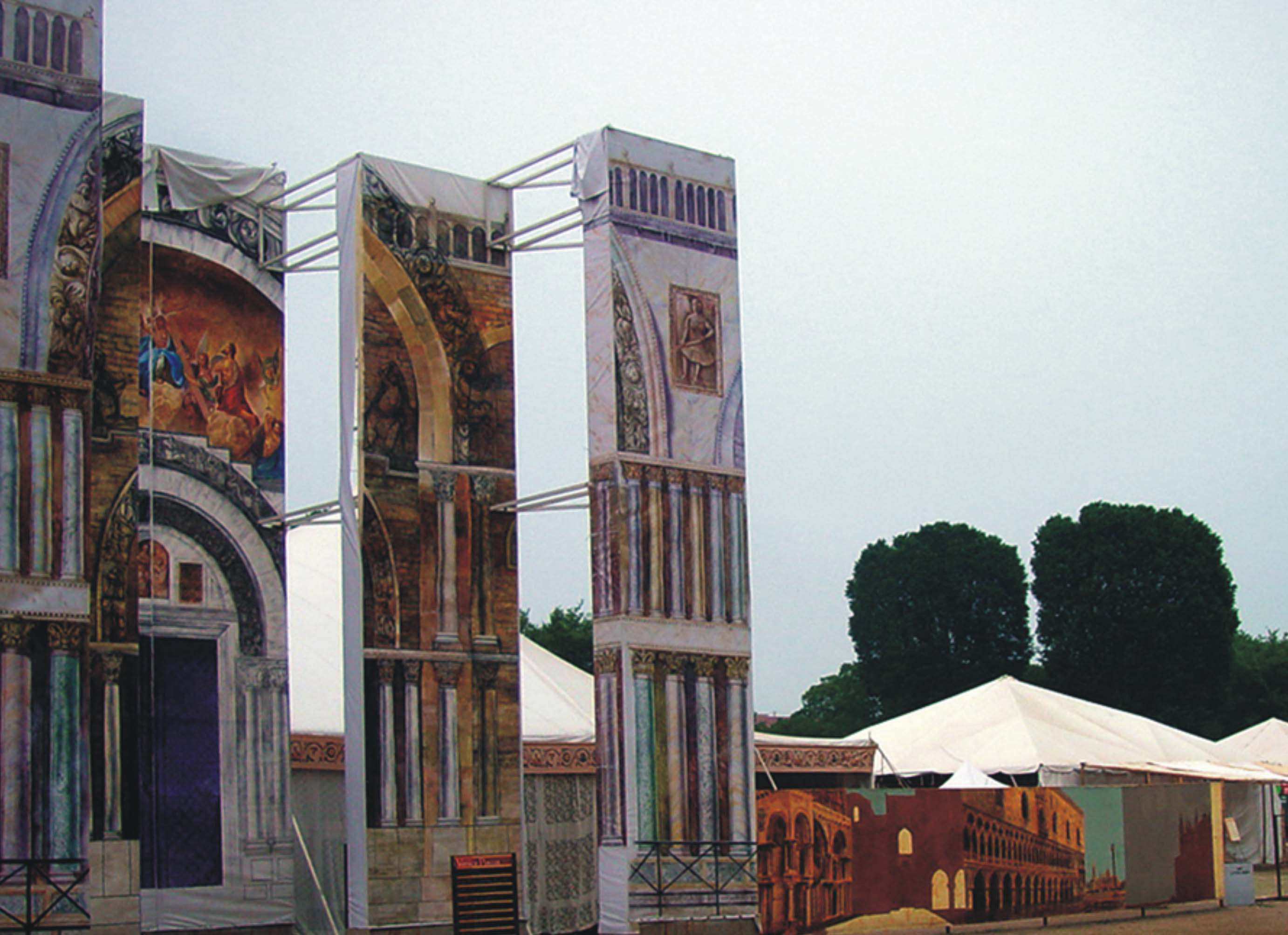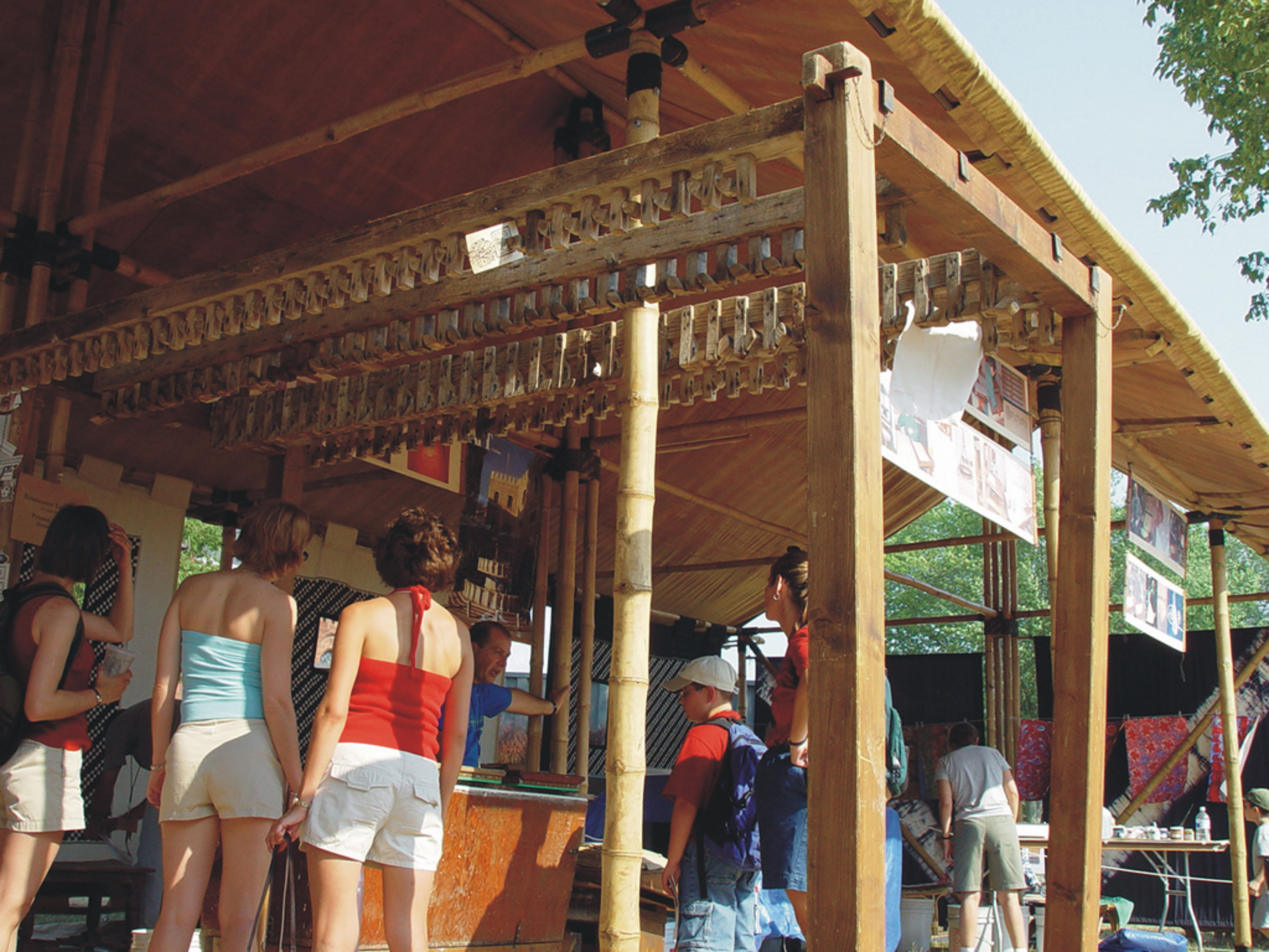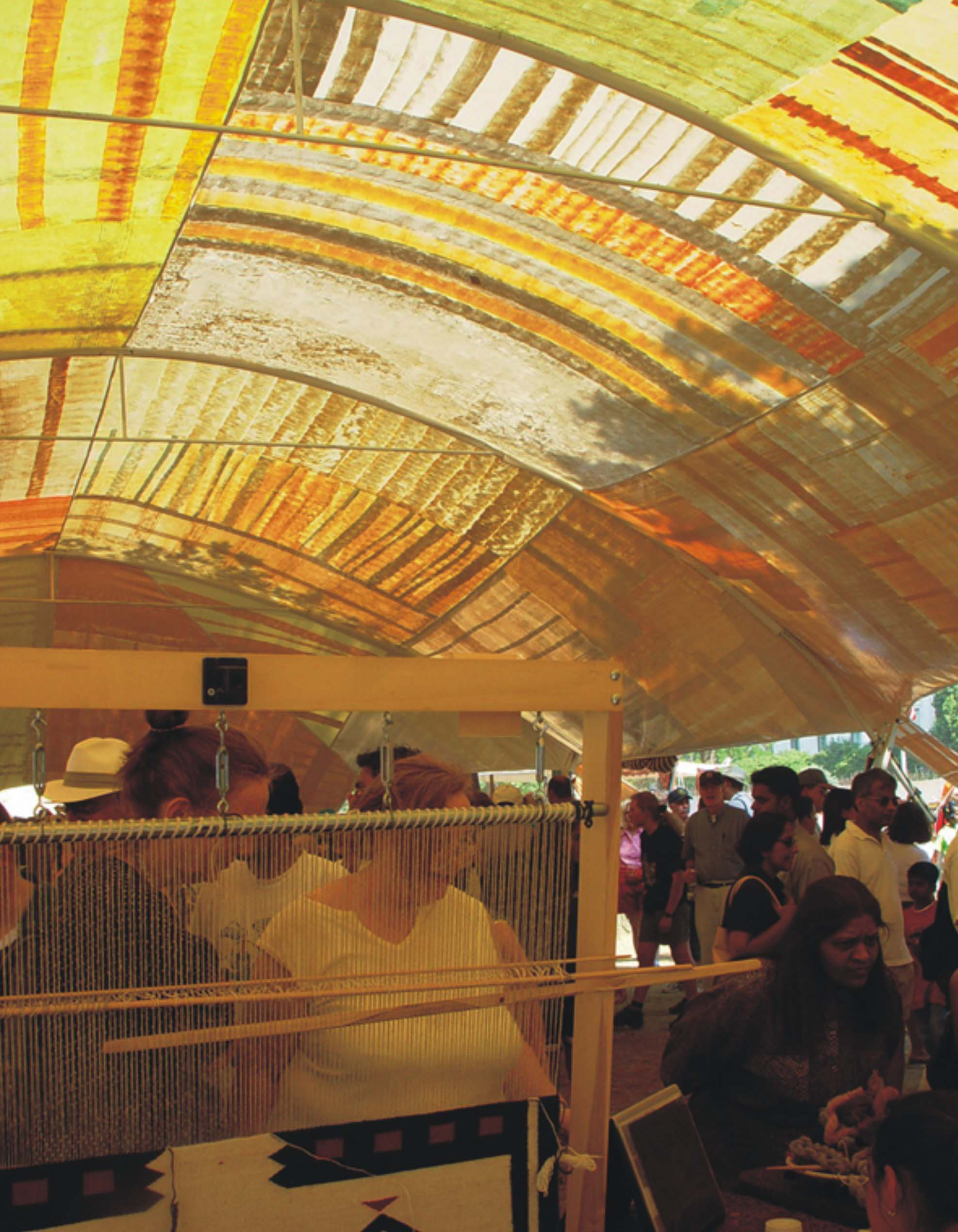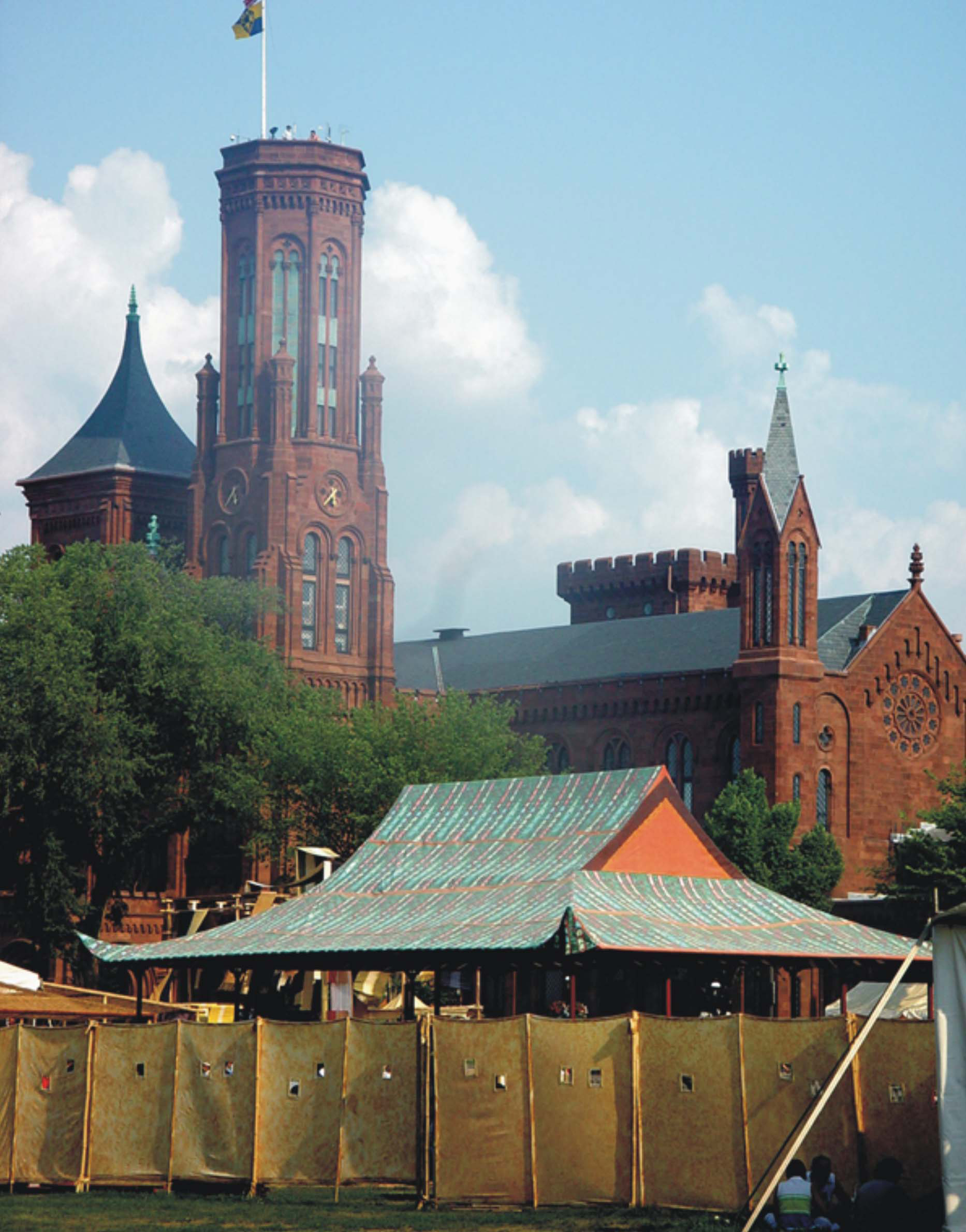 The Smithsonian (Washington) was organizing an event to celebrate the Silk Route. The curator for this exhibition, Mr. Rajiv Sethi conceived of a concept that required building famous structures from the ‘Route’ starting from Todai ji Nara (Japan) to Palladio square (Italy). His entire vision was realised through a complex set of structures which were designed without sub ground foundation and authentic detail. Craftsmen and designers worked together over a period of 6 months to create systems in Delhi which were to shipped to Washington (USA) for installation.