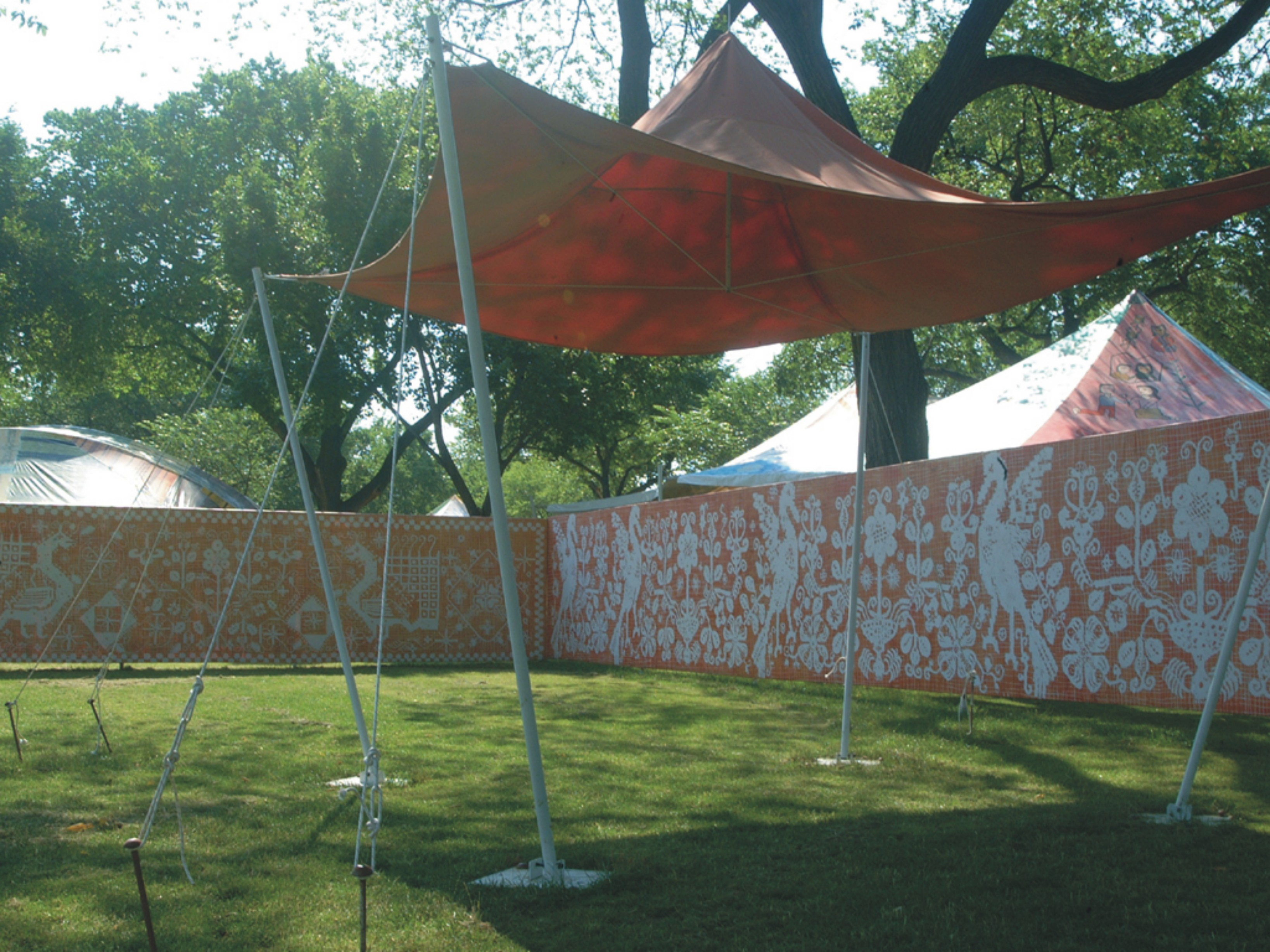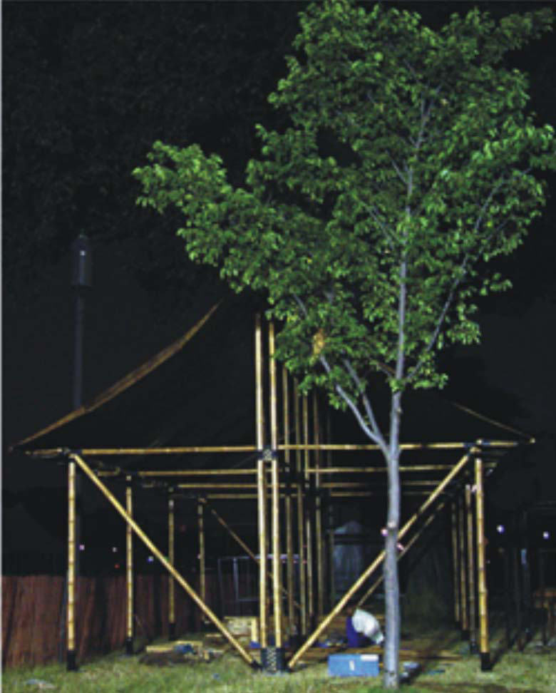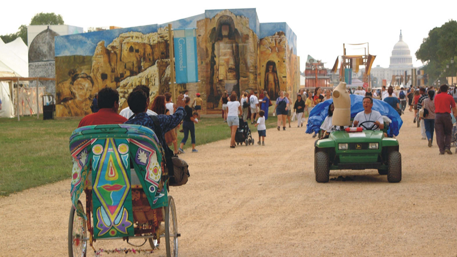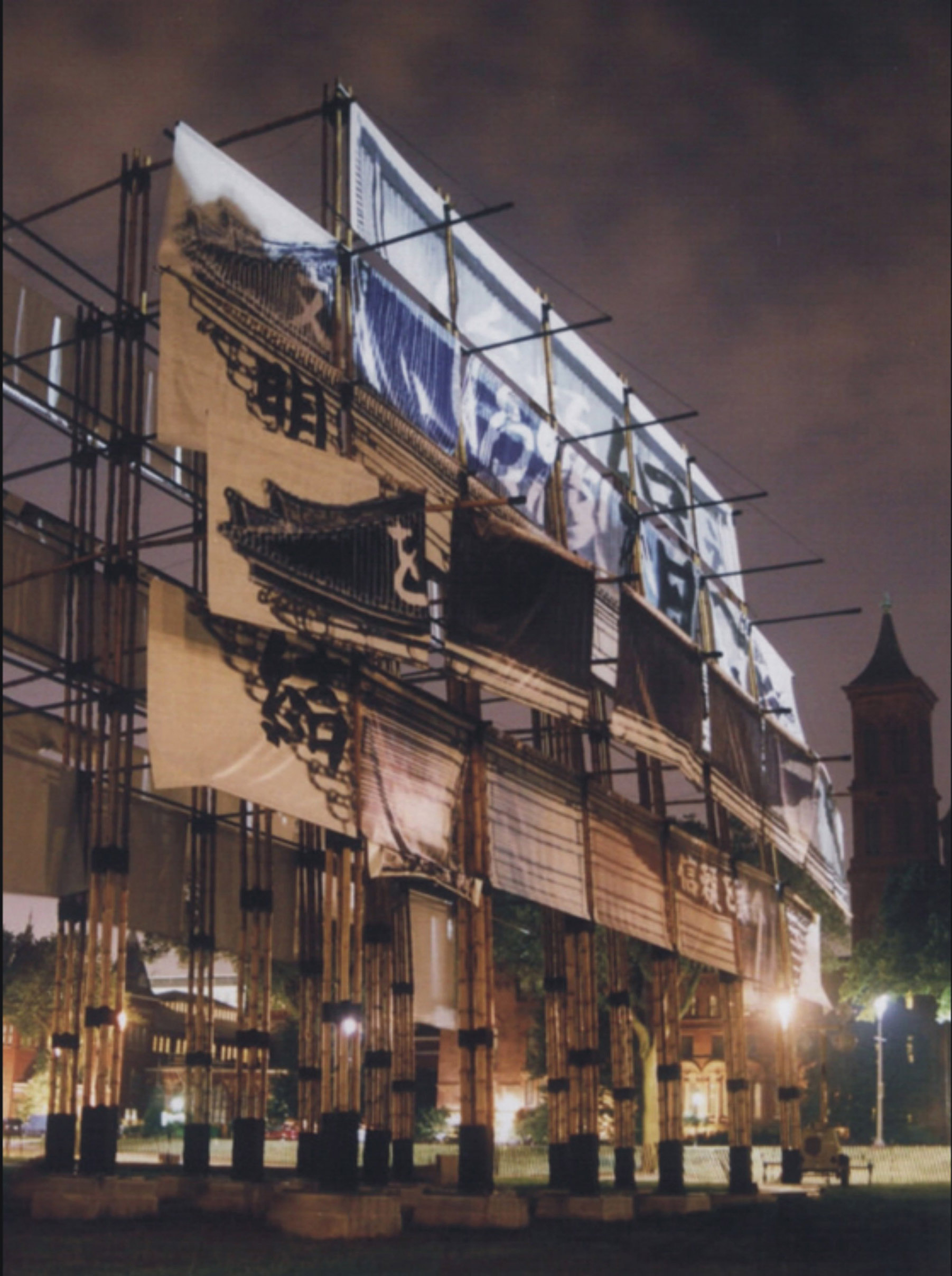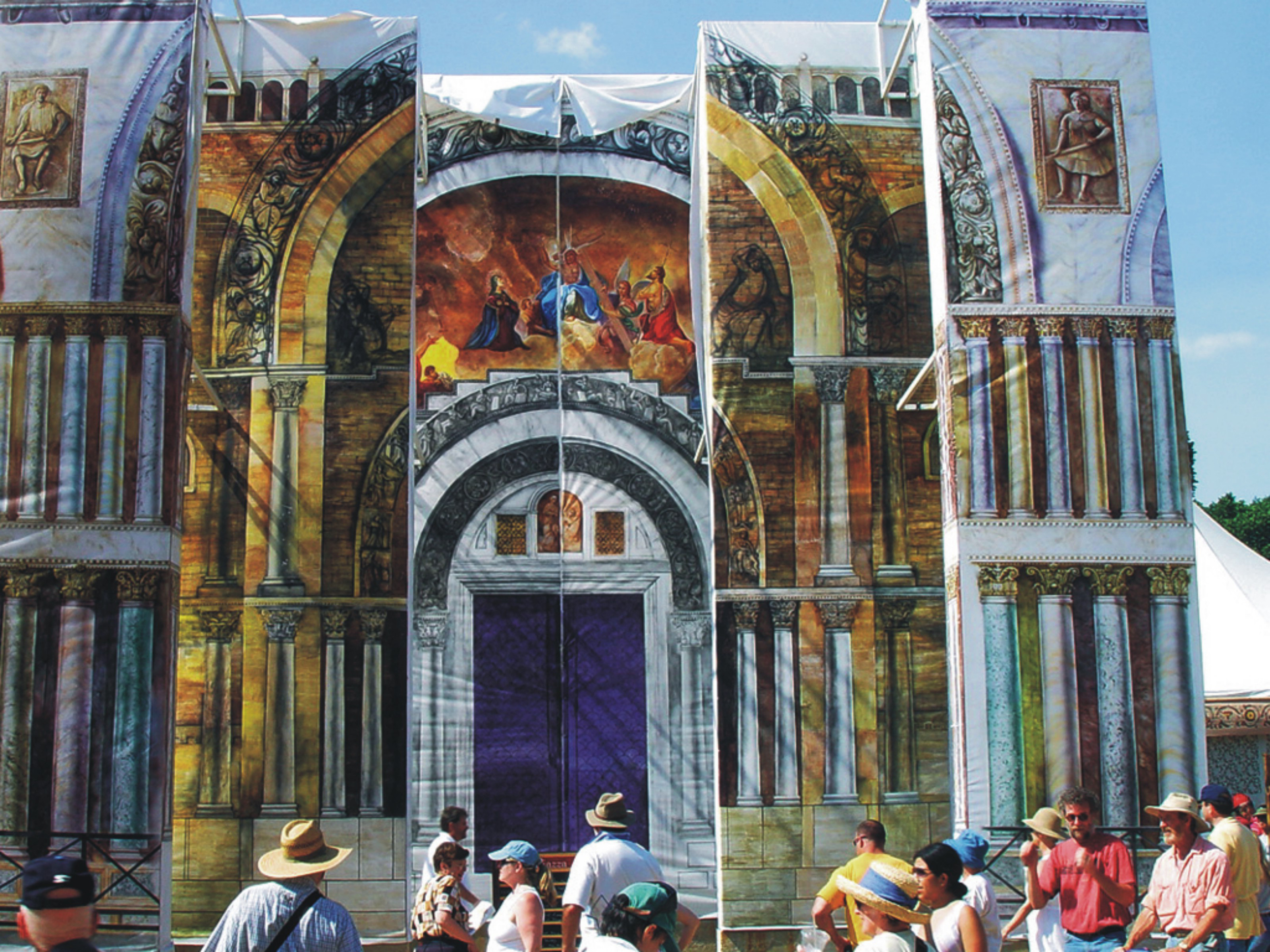 The Smithsonian (Washington) was organizing an event to celebrate the Silk Route. The curator for this exhibition, Mr. Rajiv Sethi conceived of a concept that required building famous structures from the ‘Route’ starting from Todai ji Nara (Japan) to Palladio square (Italy). His entire vision was realised through a complex set of structures which were designed without sub ground foundation and authentic detail. Craftsmen and designers worked together over a period of 6 months to create systems in Delhi which were to shipped to Washington (USA) for installation.
